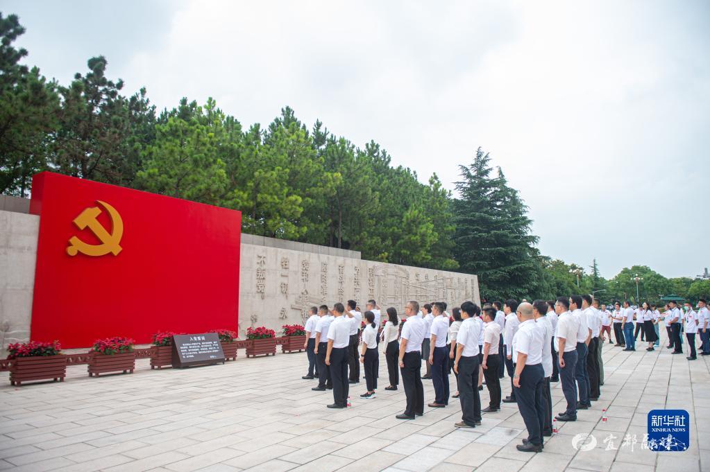 参观南湖革命纪念馆的党员重温入党誓词(2021年6月30日摄)。新华社记者 江汉 摄