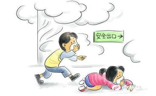 为了防止火场浓烟呛入,逃生时要佩戴防烟面罩,或用浸湿的毛巾捂住口鼻,弯腰低姿态撤离。