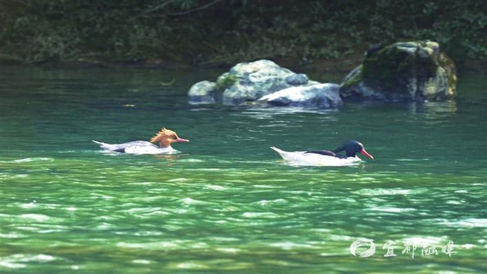 目前,宜都市现有国家重点保护野生动物49种,其中国家一级保护动物8种,除了中华秋沙鸭,黑鹳、苍鹭、斑嘴鸭、鸬鹚等候鸟也相继飞抵宜都越冬,共同绘就灵动的生态画卷。