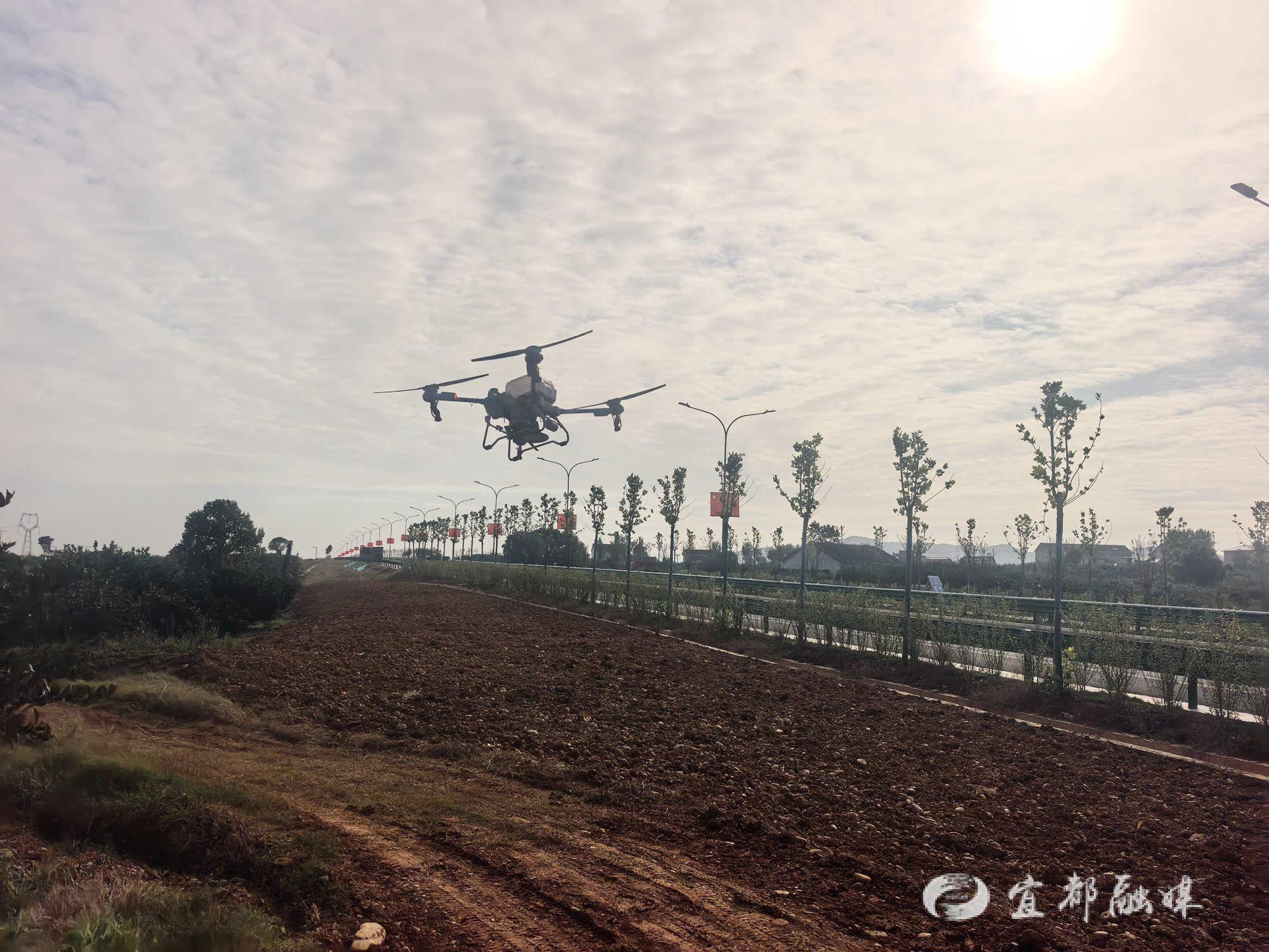 宜都融媒讯(通讯员 廖艳丽)11月11日,高坝洲镇白洪溪村的农田里一派热闹景象:旋耕机在田间轰鸣着翻整土地,无人机腾空后精准盘旋飞播,传统农耕场景与现代科技在此刻完美交融,绘就出一幅鲜活的现代农业生产画卷。