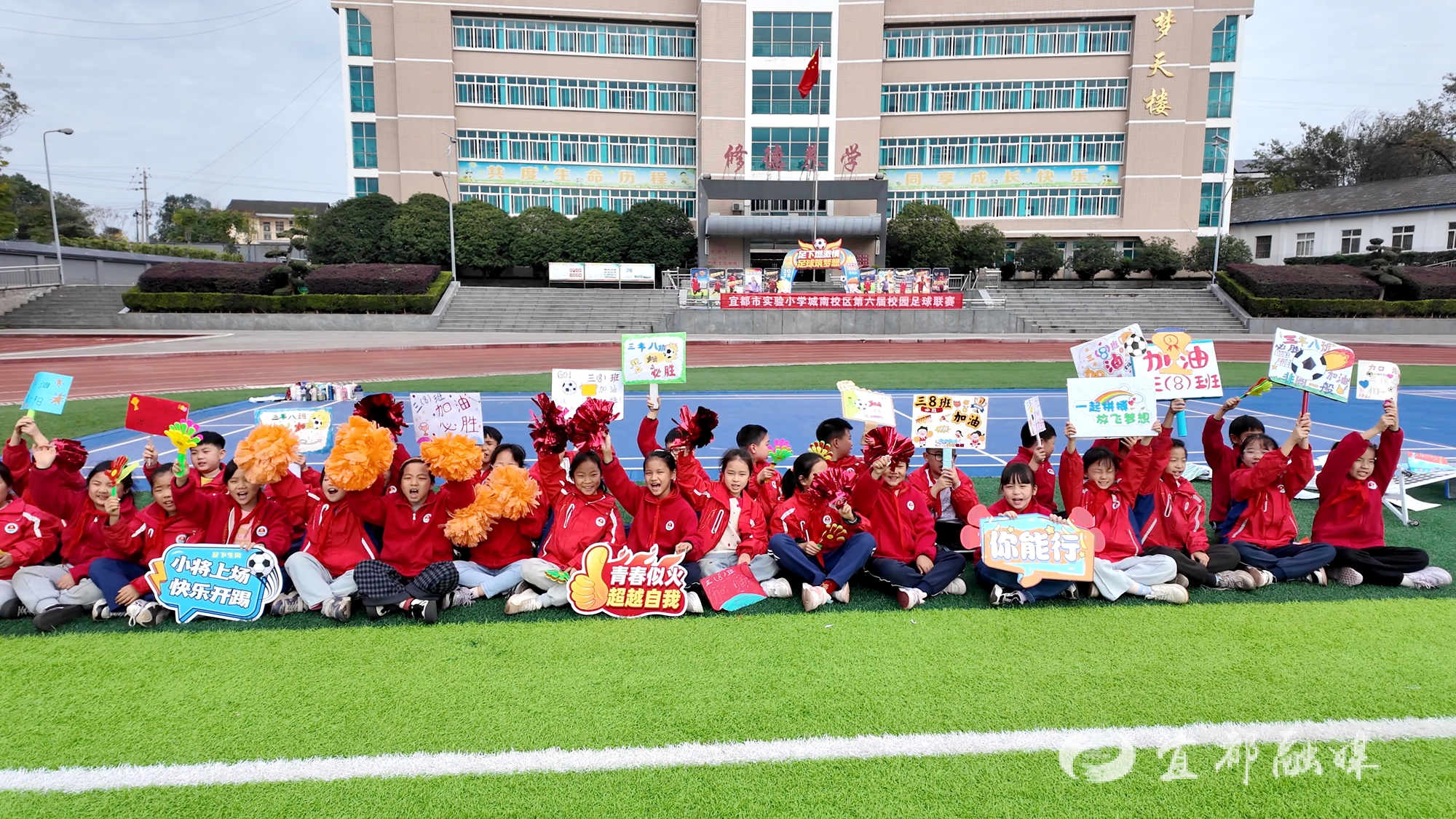 宜都融媒讯(记者 朱敏)11月11日,实验小学城南校区第六届校园足球联赛火热开幕。本届赛事以“人人参与、班班参赛”为特色,在绿茵场上掀起一阵足球热潮,展现出孩子们蓬勃的朝气与运动的快乐。