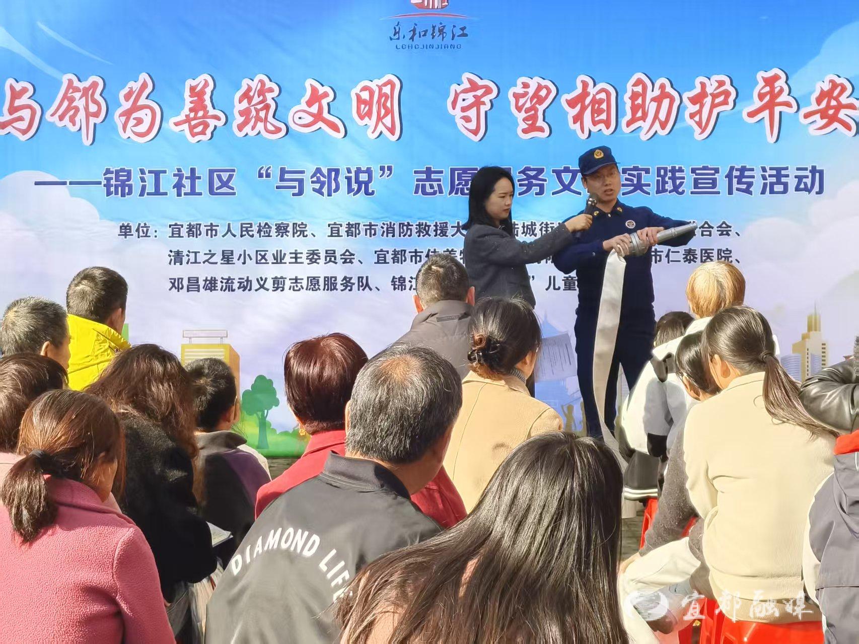 宜都融媒讯(通讯员 谢雷)为提升居民消防安全意识,筑牢冬季防火屏障,近日,宜都市消防救援大队联合陆城街道锦江社区,在清江之星小区“与邻说”志愿服务文明实践宣传活动现场,开展了一场生动而实用的消防安全宣传活动,将安全知识送到居民家门口。