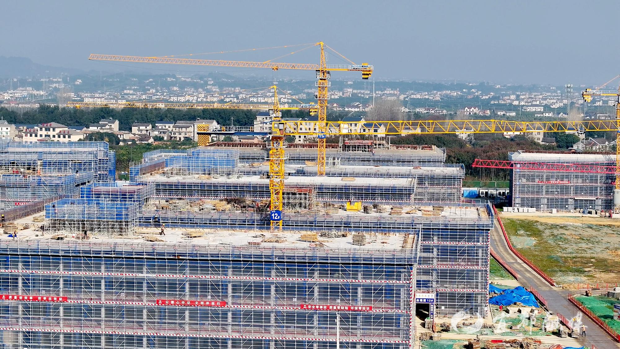 宜都市产教融合园高职校区项目负责人程锐介绍:“我们的整个(工程)2025年5月份开始动工,整个职教园15栋单体建筑,在11月28日已经全部封顶。现在所有工程已完全转入了装饰装修、室外和暖通、强弱电这块的施工。我们原来计划的工期是在明年8月份做交付。”