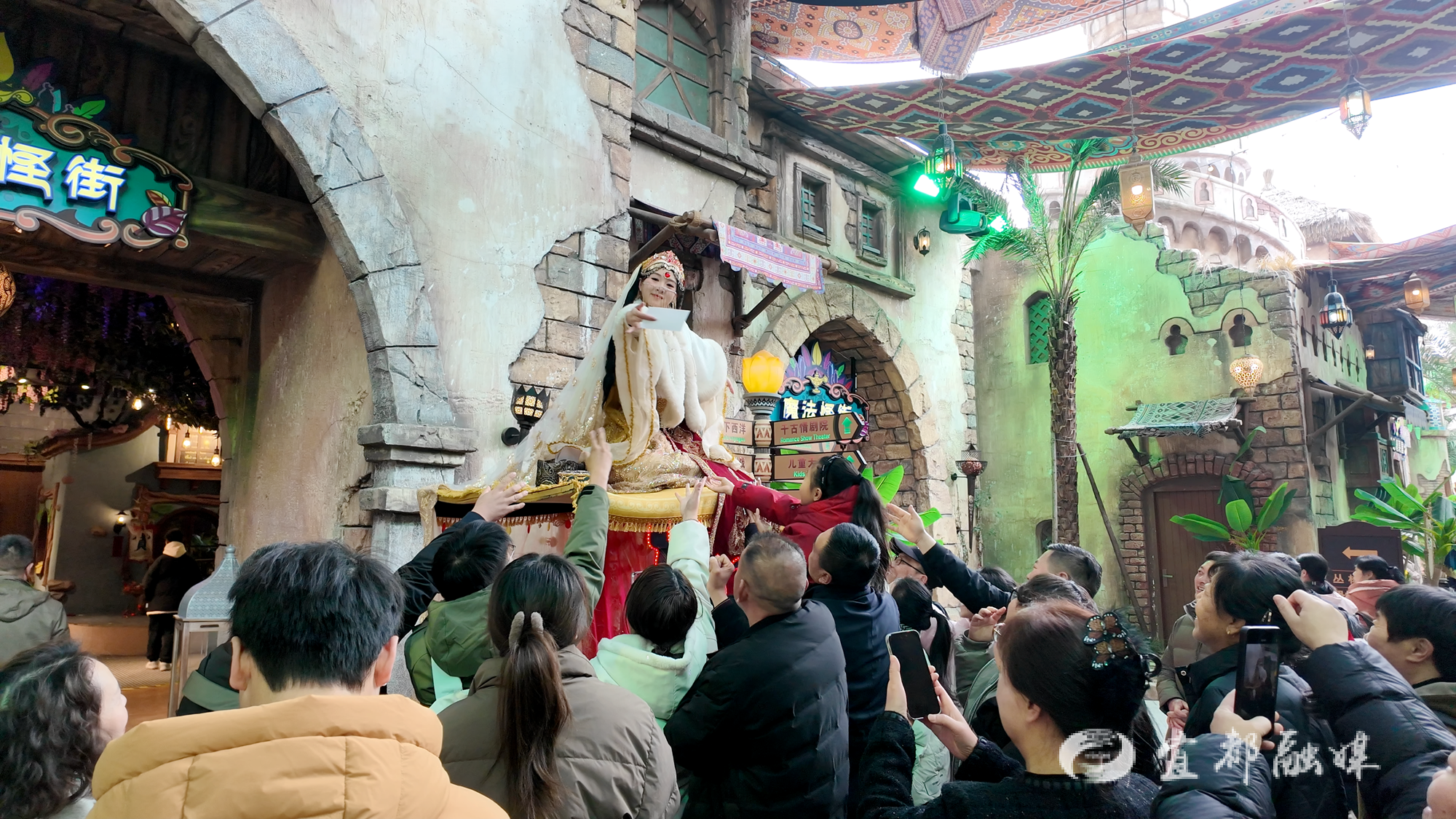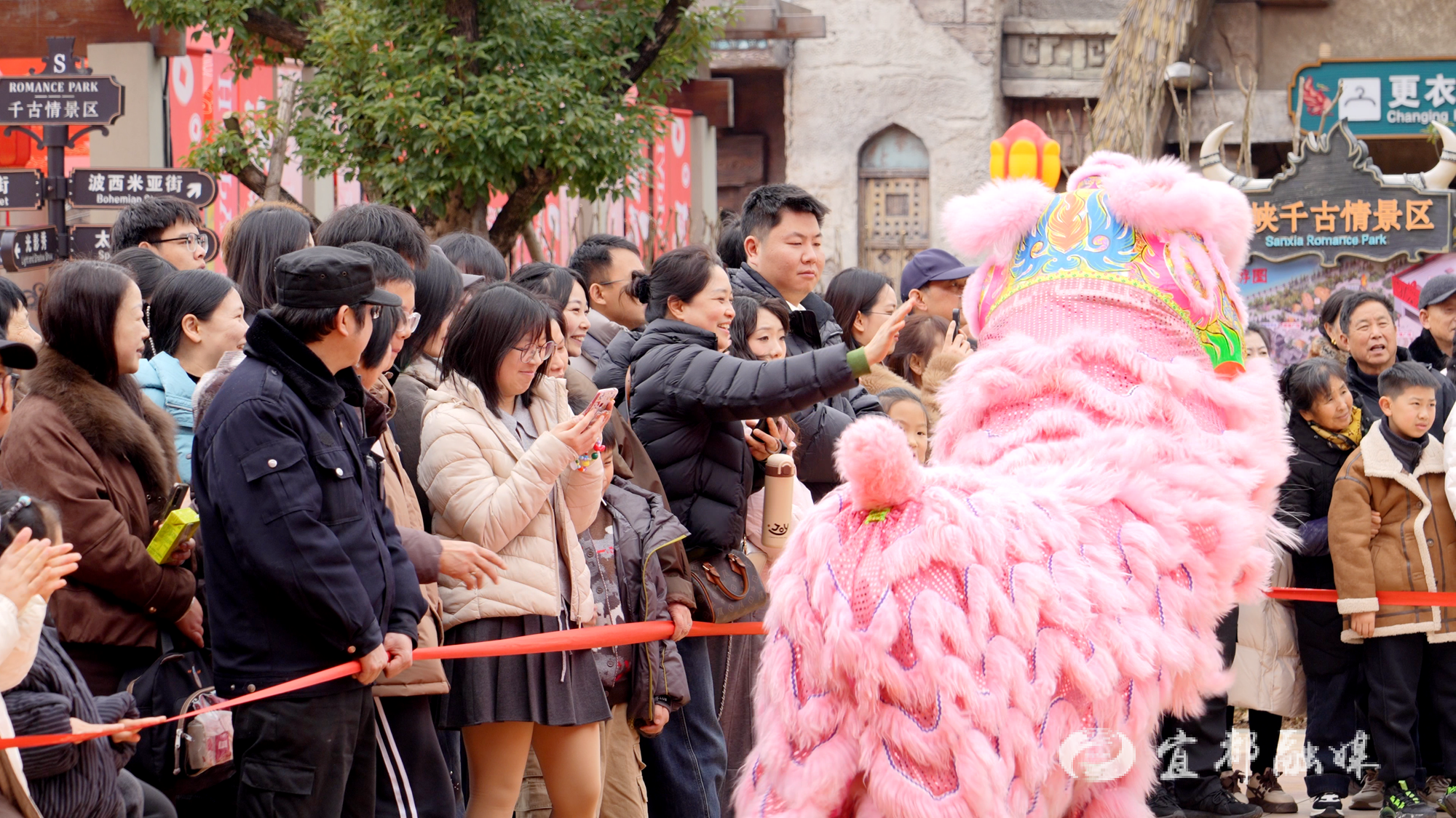走进景区,张灯结彩的喜庆氛围扑面而来,人潮涌动,欢声笑语汇成一片欢乐的海洋。为了让游客感受最纯正的年味,景区精心策划了每天超过120场的演艺活动,打破了传统的“观”与“演”边界,让游客从“看景”转为“入景”。