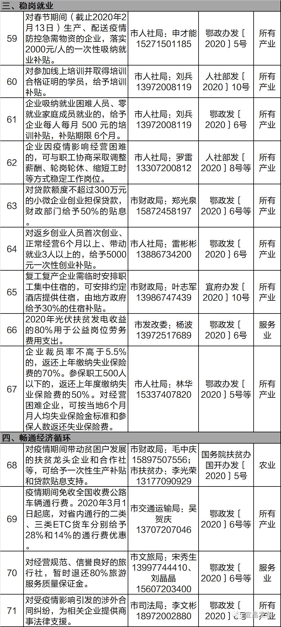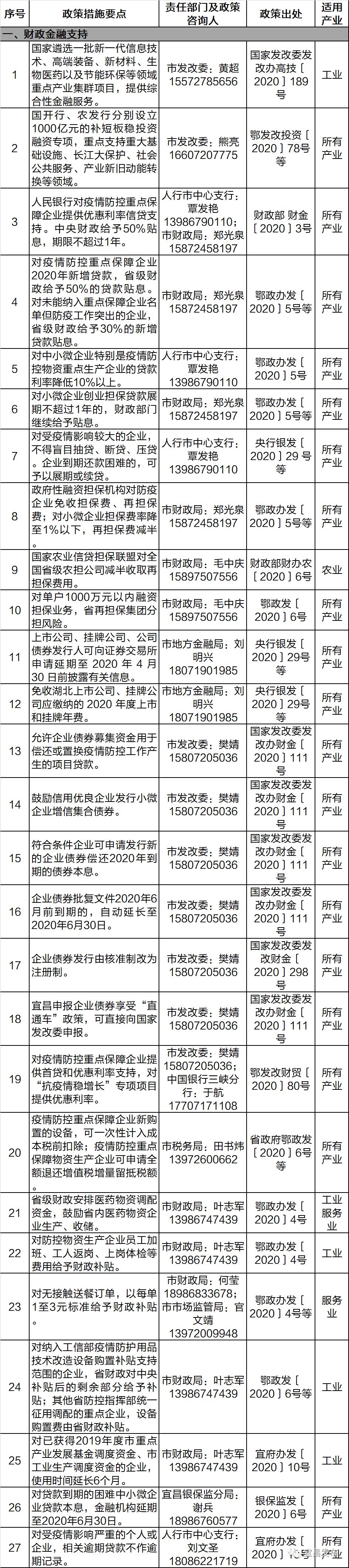 重磅!90条政策,宜昌一表清 2020-03-23 08:32 宜昌发布 0 疫情期间 国家、省、市稳产稳企稳业 政策“一表清” 说明: 1、“一表清”汇集了疫情以来至3月15日国家、省、市主要稳产稳企稳业政策。 2、“一表清”采取条目式简述,若有不明之处,可依据“政策出处”栏查询。 3、后期政策若有增减,及时调整。
