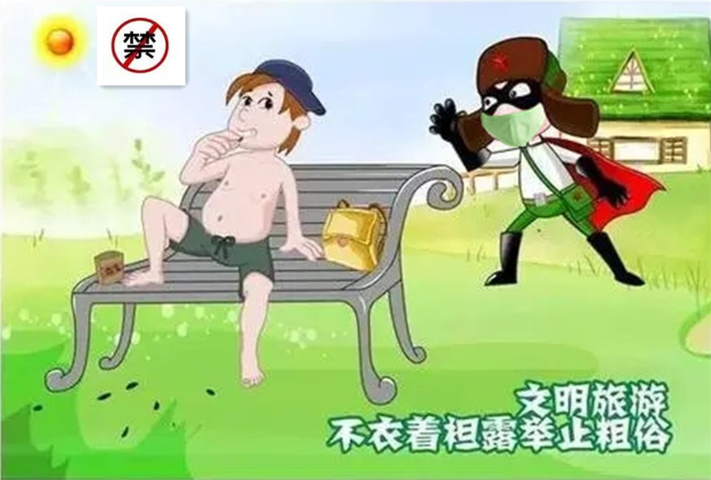注重礼仪,衣着整洁得体,不在公共场所袒胸赤膊,不讲粗话脏话;尊重民族宗教习俗,尊重外宾及其他游客;礼让老幼病残孕,礼让女士,主动帮助有困难的人。