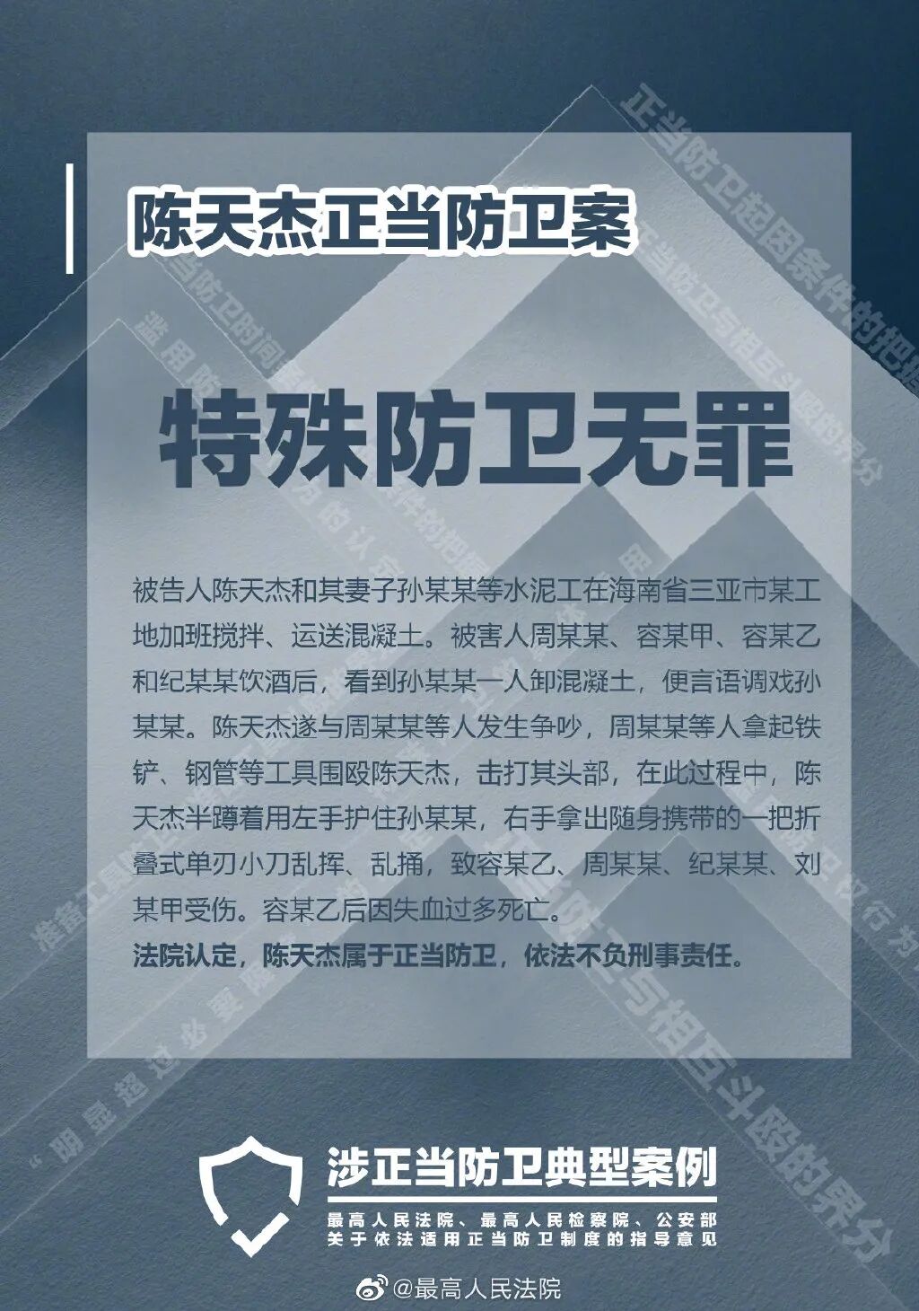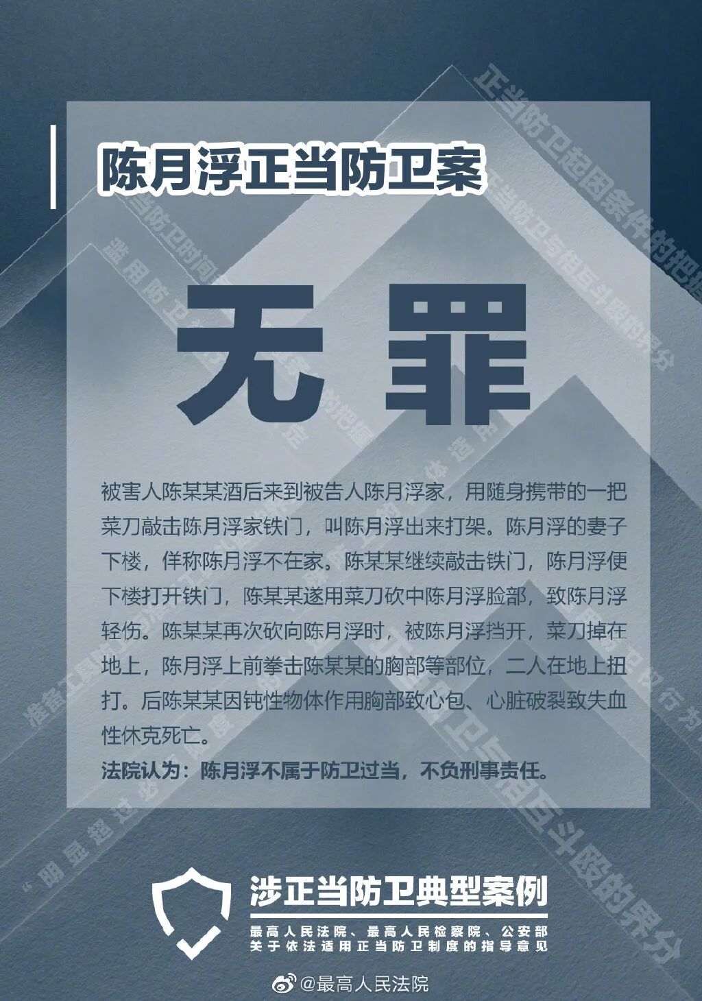 今天上午,《最高人民法院、最高人民检察院、公安部关于依法适用正当防卫制度的指导意见》(以下简称《指导意见》)发布,同时公布了七个涉正当防卫的典型案例。