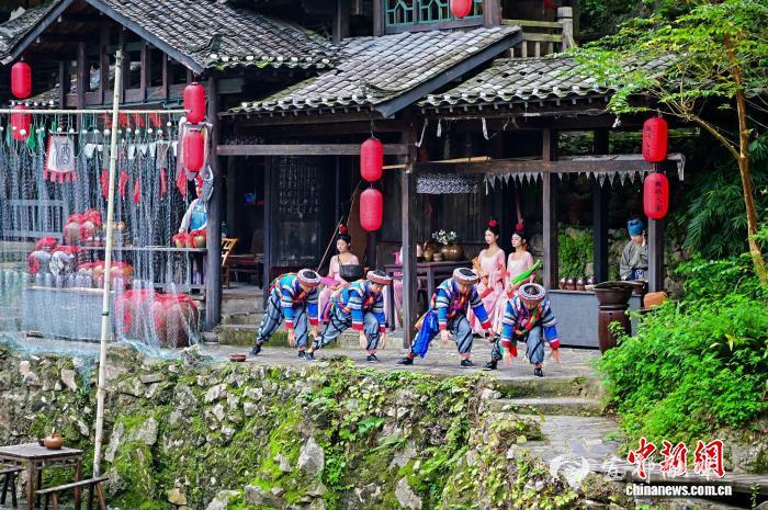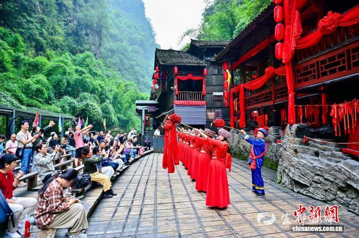 图为三峡人家景区中,民族风情演出。刘康 摄