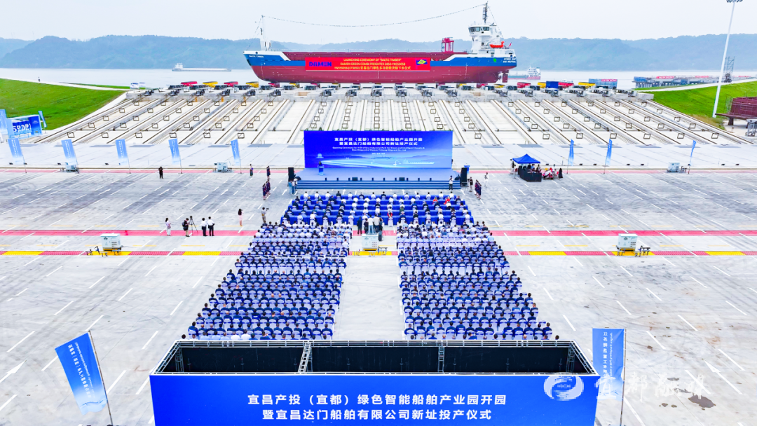 宜都融媒讯记者 朱敏 周传峰 熊婷婷 刘传东 通讯员 周咪  杨小雨)今天(10月10日),宜昌产投(宜都)绿色智能船舶产业园开园暨宜昌达门船舶有限公司新址投产仪式在宜都举行。该项目的建成投运,标志着宜昌在推动船舶制造绿色化、智能化转型方面迈出关键一步,为长江经济带高质量发展注入新动力。