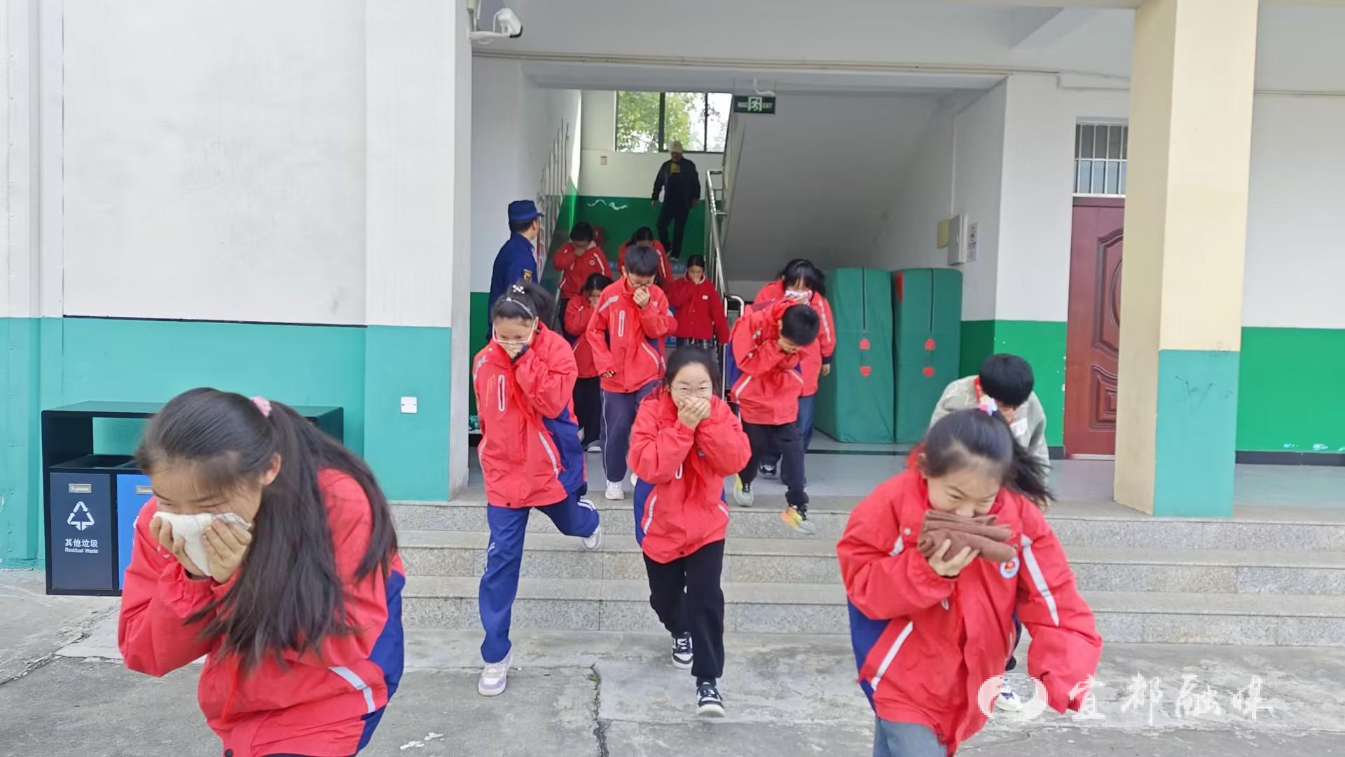 警报响起,消防应急疏散演练正式启动。各班主任及疏散引导组教师迅速到位,指引学生弯腰捂鼻,按预定路线快速有序撤离。演练全程仅用57秒集结至大操场,各班迅速清点人数并上报,整个过程紧张有序、规范高效。