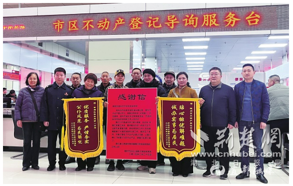 ▲随州市不动产登记中心为白云山公园职工解决办证难题,获感谢信和锦旗