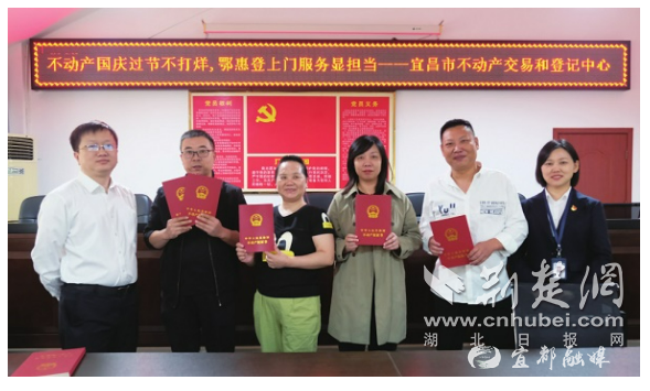 ▲宜昌市不动产交易和登记中心“鄂惠登”服务小分队在安置房项目现场提供一站式服务