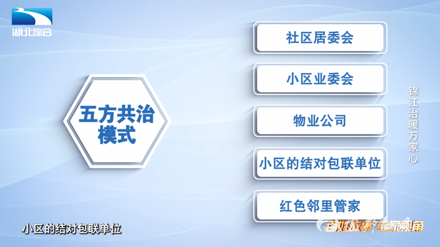 能否以此方式破解社区其他难题、形成新机制?“三方联动 五方共治”联席会议机制应运而生,由社区居委会、小区业委会、物业公司三方联动处理社区事务,若超出职能范围,则联合小区的结对包联单位和“红色邻里管家”处理。在锦江社区“大党委”指导下,宜都市人大办等9个共建单位及300多位下沉党员担任的“红色邻里管家”共同为居民排忧解难,该机制已在宜都全市推广运用。