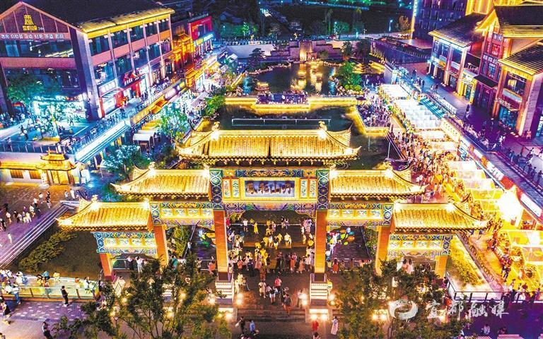 7月12日,鲟龙水街人流如织。灯光秀、电音派对等夜间特色项目为游客提供全新消费场景,激发夜经济活力。 刘传东摄(中经视觉)