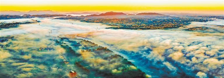 11月25日,雾霭笼罩宜都,水汽氤氲,城市楼宇若隐若现。 冯 建摄(中经视觉)