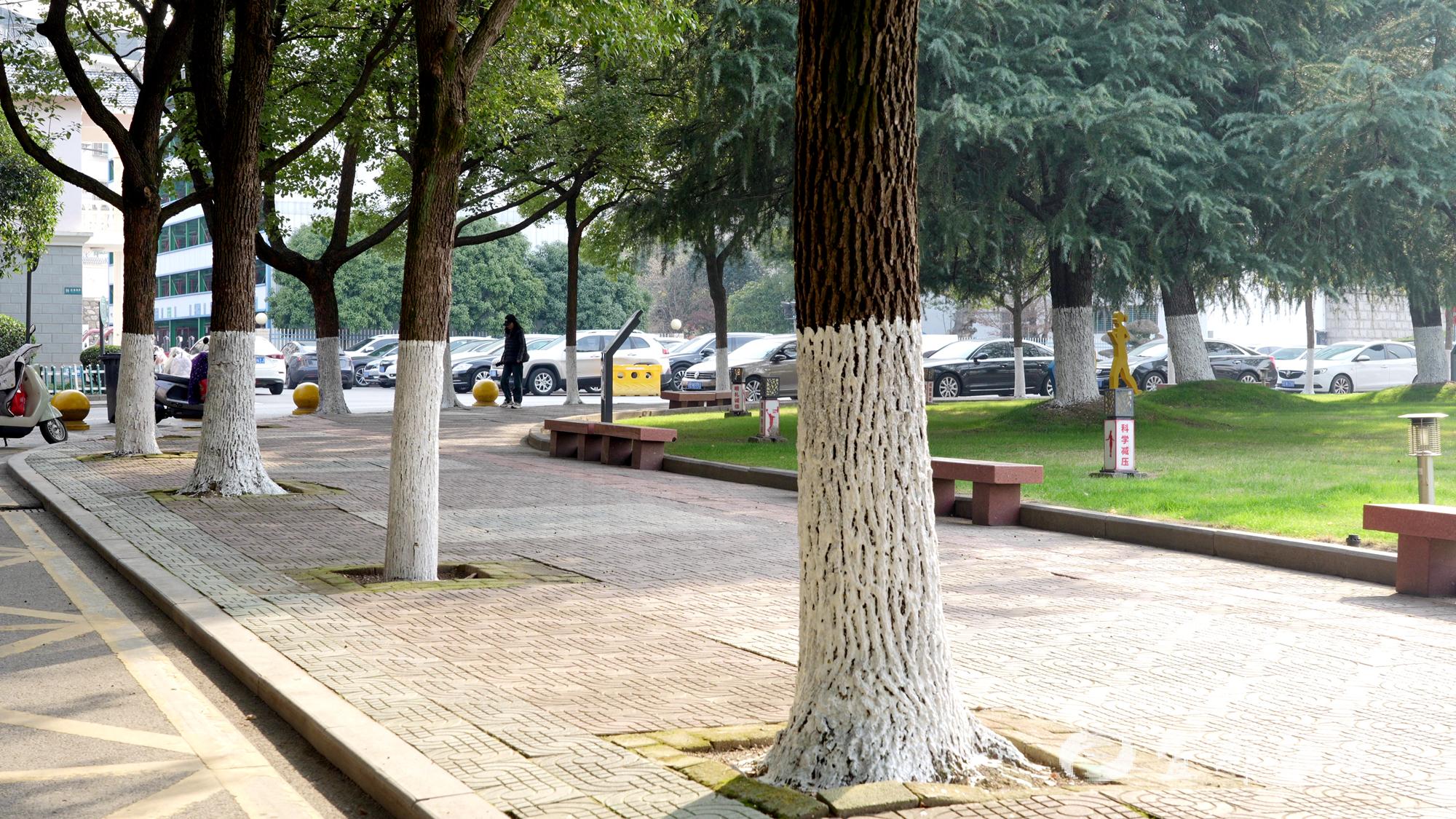 据了解,涂白剂由生石灰、硫磺粉和水按比例配制。涂抹后能在树干表面形成一层保护膜,防止冻裂;同时还能有效杀灭藏匿在树皮中的虫卵与病菌,从源头上降低来年病虫害发生风险。