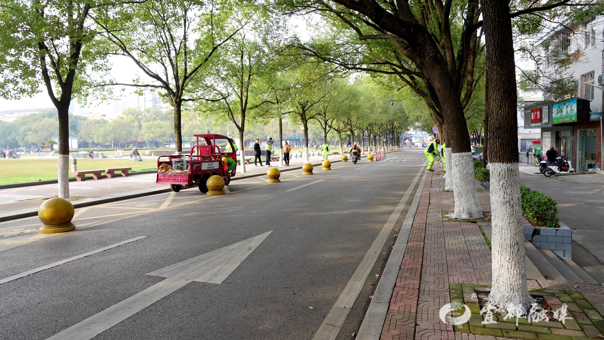 宜都城发东风环境服务有限公司园林主管陈强介绍:“我们共组建了5个作业专班,近百名工作人员协作、高效施工。截至目前,涂白工作已完成了三分之一,预计本月月底即可完成。”