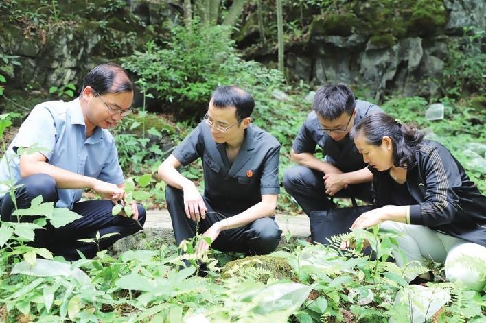 五峰法院深入长乐坪镇国有壶瓶山林场开展巡林活动,林场负责人向法院干警介绍林场珍稀野生植物。