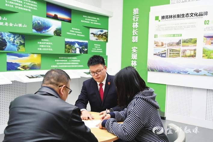 长阳法院法官带领案件当事人到宜昌两山转化运营中心认购林业碳汇。