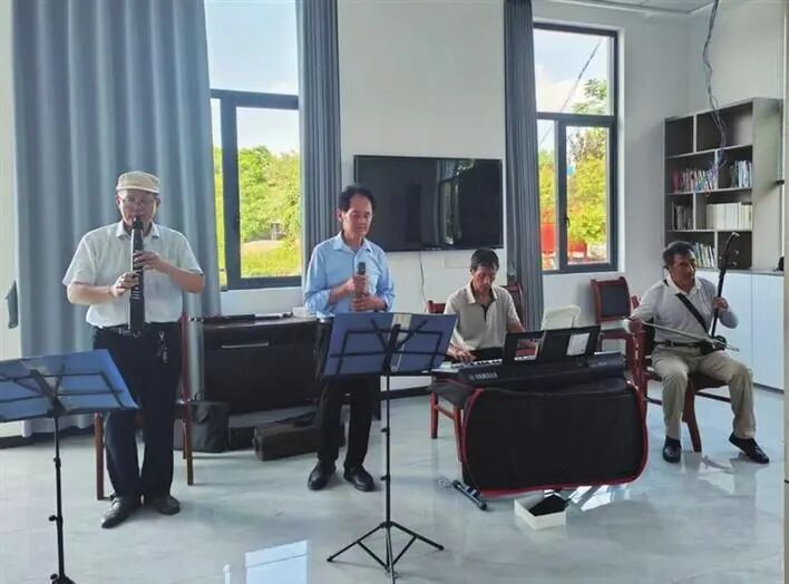 2025年8月21日,姚家店镇枫相树村音乐爱好者利用农村互助照料中心进行乐器演奏活动