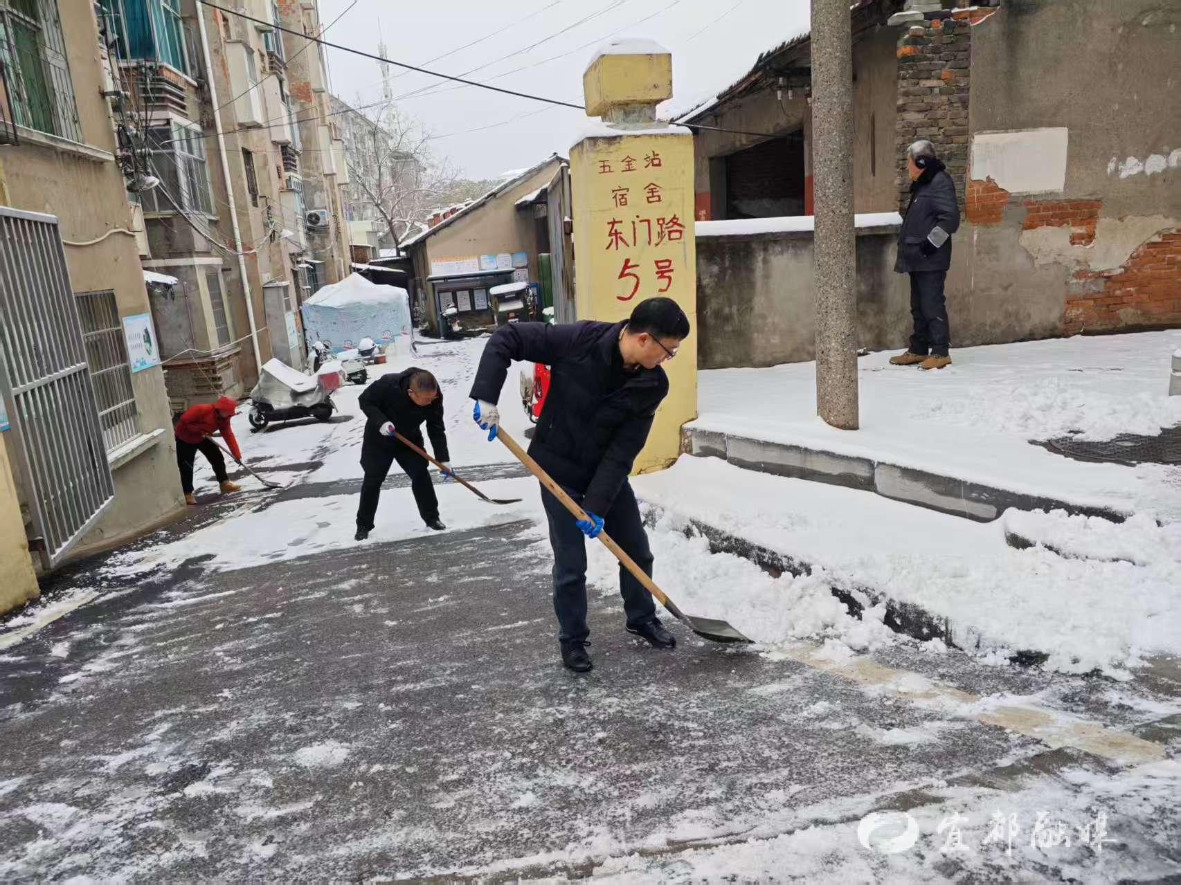 宜都融媒讯(通讯员 谭宇琦)1月19日晚,我市普降大雪。次日清晨,为保障小区道路畅通,守护居民安全出行,市发改局积极响应市直机关工委和包联东风社区号召,组织全体机关干部职工下沉包联小区和路段,开展除冰除雪志愿服务活动。