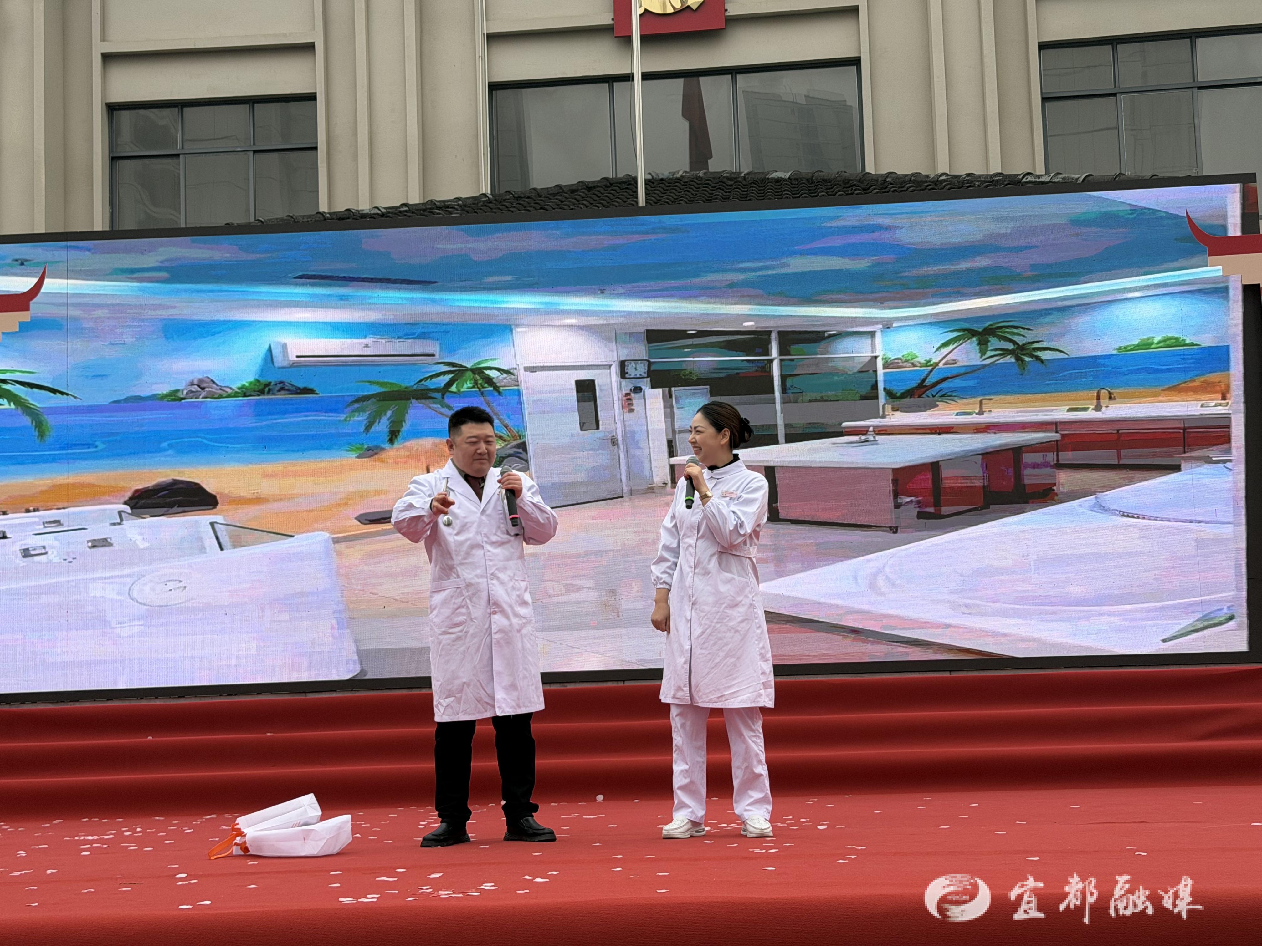 演出现场,两位身着白大褂的医护人员一改往日严谨的工作形象,化身幽默风趣的脱口秀演员。他们用地道的宜都方言,把产科日常里的暖心故事、啼笑皆非的小插曲讲得生动鲜活。从准爸爸们一进产科就手忙脚乱,到新妈妈生小孩期间他们出洋相的场面,一个个真实又鲜活的片段,让观众在笑声中读懂了产科工作的酸甜苦辣,也感受到了妇幼人专业又温暖的医者情怀。
