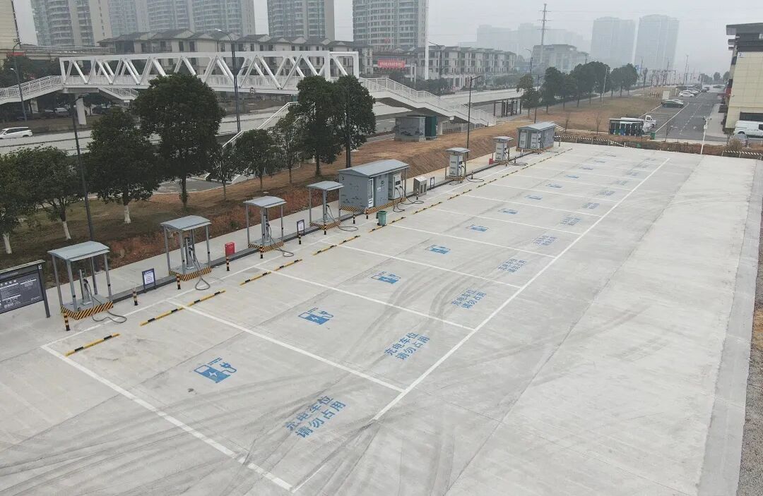 楠竹园货运重卡充电站立足物流行业实际需求,在设备配置与场地设计上精准发力、兼顾实效。站内设置4台400KW一体式直流双枪快充桩,最大输出功率400KW,1小时可充电400度,单枪最大输出功率达200KW,可实现货运重卡快速补能、高效续航,大幅节省车辆等候时间;配套1台240KW群充系统(1拖4),单枪最大输出240KW,能智能调配功率,高效承接多辆重卡同时充电需求,提升整体补能效率;全场规划12个快充车位,车位设计宽敞合理,充分考量货运重卡的转弯半径与停靠特点,切实提升车辆充电的便捷性与体验感。