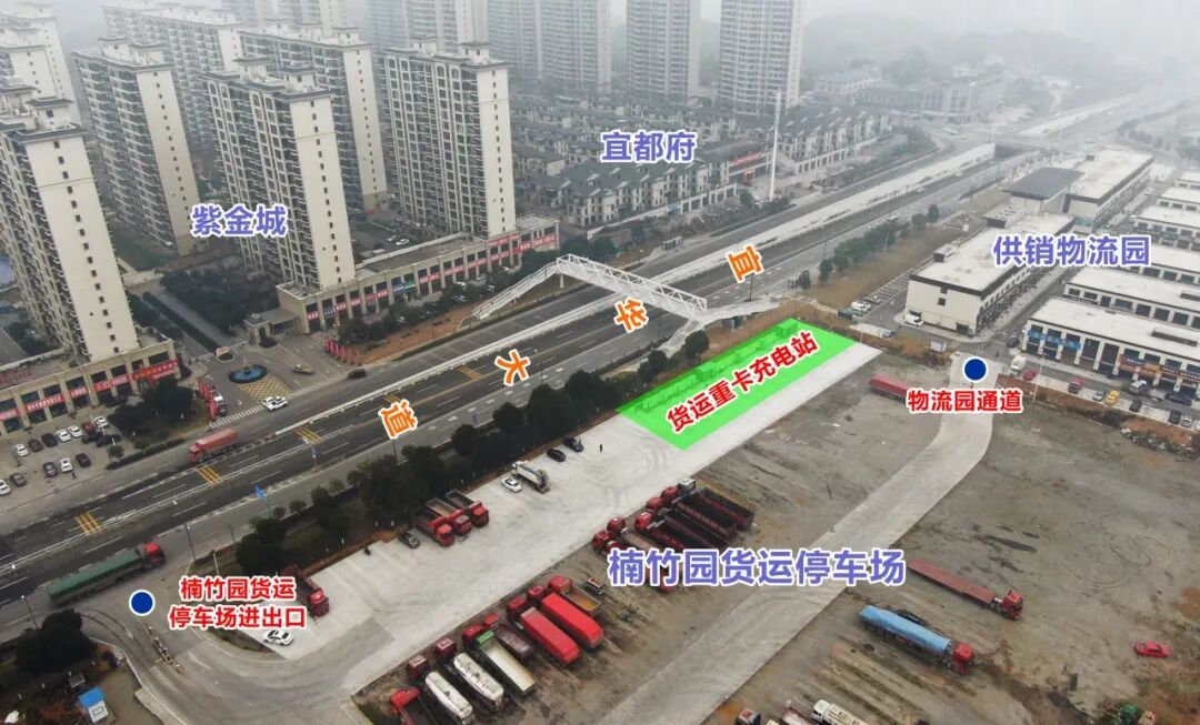 为进一步服务物流企业、提升补能便利性,楠竹园货运重卡充电站选址便捷,具体位于宜都市宜化大道楠竹园货运停车场内,与供销物流园连通,可直接对接园区及周边物流企业,实现“物流停靠+快速补能”一体化服务,切实为物流车辆减负、为物流行业提速,助力宜都物流产业绿色转型、高质量发展。