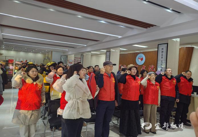 沿河社区“平安瞭望”志愿服务队伍成立仪式上,志愿者进行宣誓