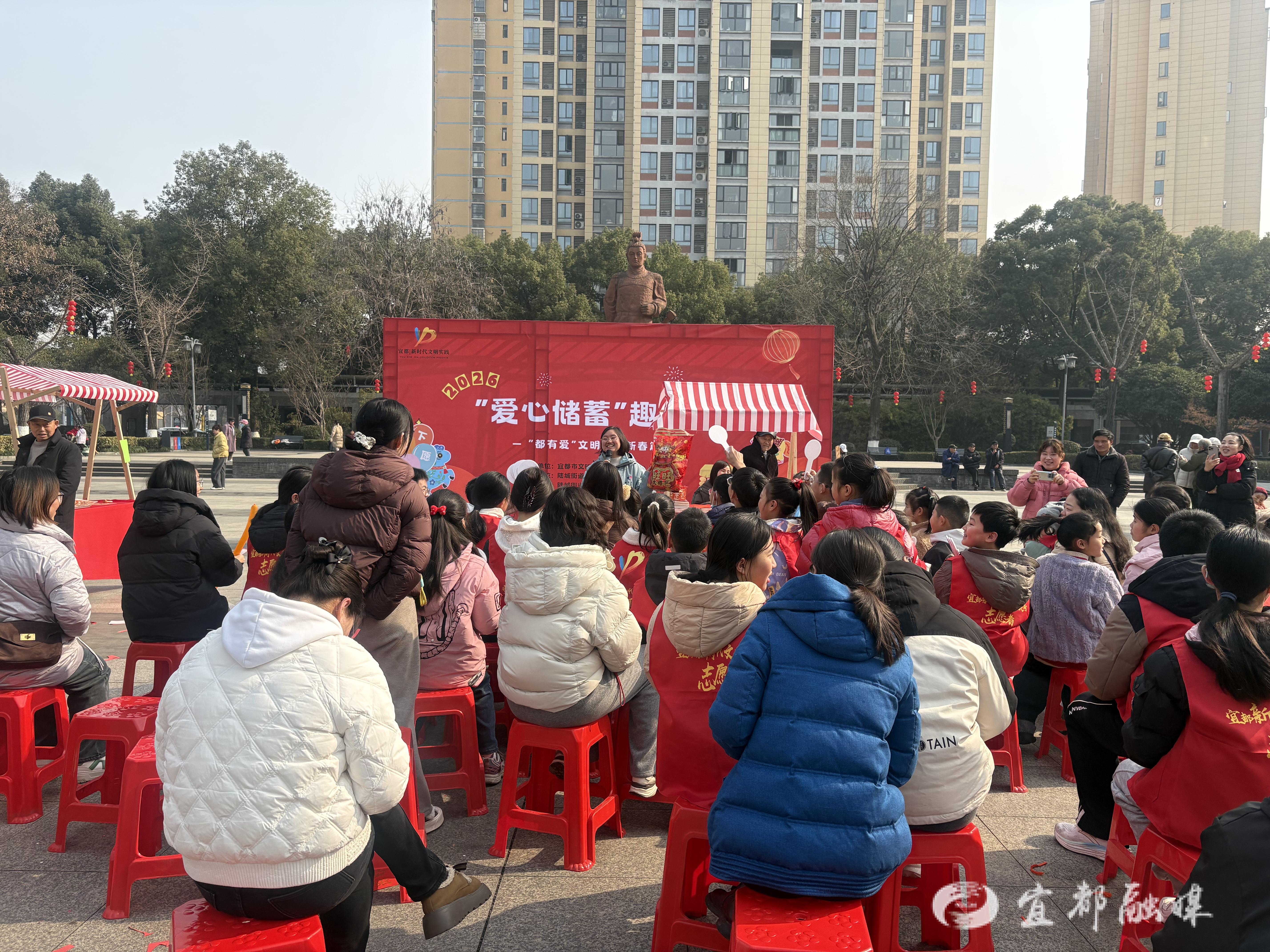 宜都融媒讯(通讯员 刘晓玲)为丰富辖区居民新春文化生活,传递公益温暖,2月8日,“都有爱”文明市集新春篇“爱心储蓄”活动在陆逊广场温情启幕。活动聚焦青少年家庭,创新融合公益实践、趣味挑战与年味体验,吸引众多广场游玩居民自发参与,现场洋溢着热烈欢快的节日氛围。