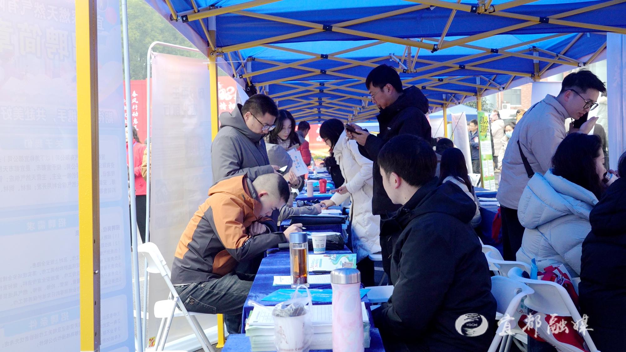 宜昌新洋丰肥业有限公司招聘专员孙秦脸上满是忙碌的喜悦:“像我们这边会有五险一金,(还有)免费的班车、员工宿舍。今天早上从我来这里就没有歇过,(短短)一二十分钟,已经填写了五六份简历。”