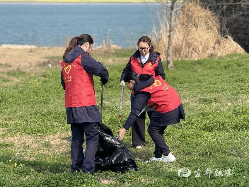活动中,志愿者们身着醒目的志愿马甲,手持垃圾夹、垃圾袋,沿着长江枝城段岸线有序开展清理工作。大家分工明确、协作默契,弯腰俯身、细致排查,重点清理沿岸塑料袋、饮料瓶、烟头、杂草等各类生活垃圾,对藏在石缝、草丛中的卫生死角逐一清理,不放过任何一处杂物。志愿者们用双手一点点擦亮长江岸线的生态底色,一抹抹“志愿红”穿梭在江滩之上,成为春日里最动人的风景线。与此同时,志愿者们化身文明宣传使者,向周边群众通俗易懂地普及长江大保护、垃圾分类、文明交通等相关知识,积极倡导绿色出行、不乱抛垃圾、爱护公共设施的文明理念,引导更多群众主动参与到生态保护与文明实践中来,以青春之力传递环保正能量、弘扬时代新风尚。