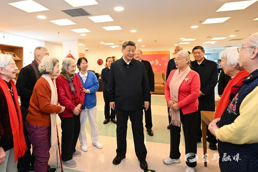 2026年2月10日上午,习近平总书记在北京市西城区“吾老·新街”养老服务街区银龄老年公寓考察时,同老人们亲切交流。新华社记者 燕雁 摄