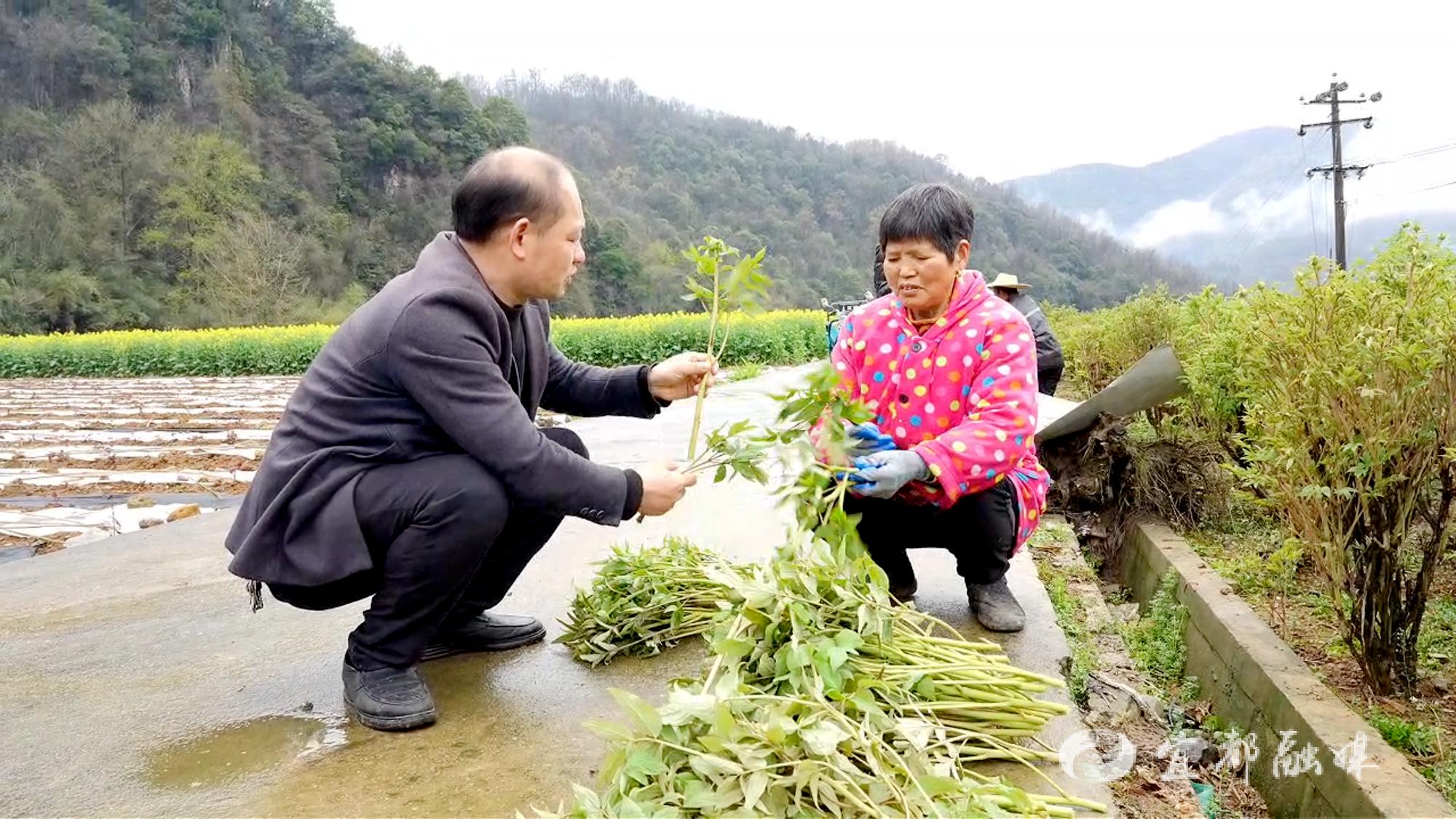 宜都融媒讯(记者 何明君 王文强)一场春雨浇开了牡丹花,王家畈镇横冲村的百亩牡丹因此迎来了采收季。
