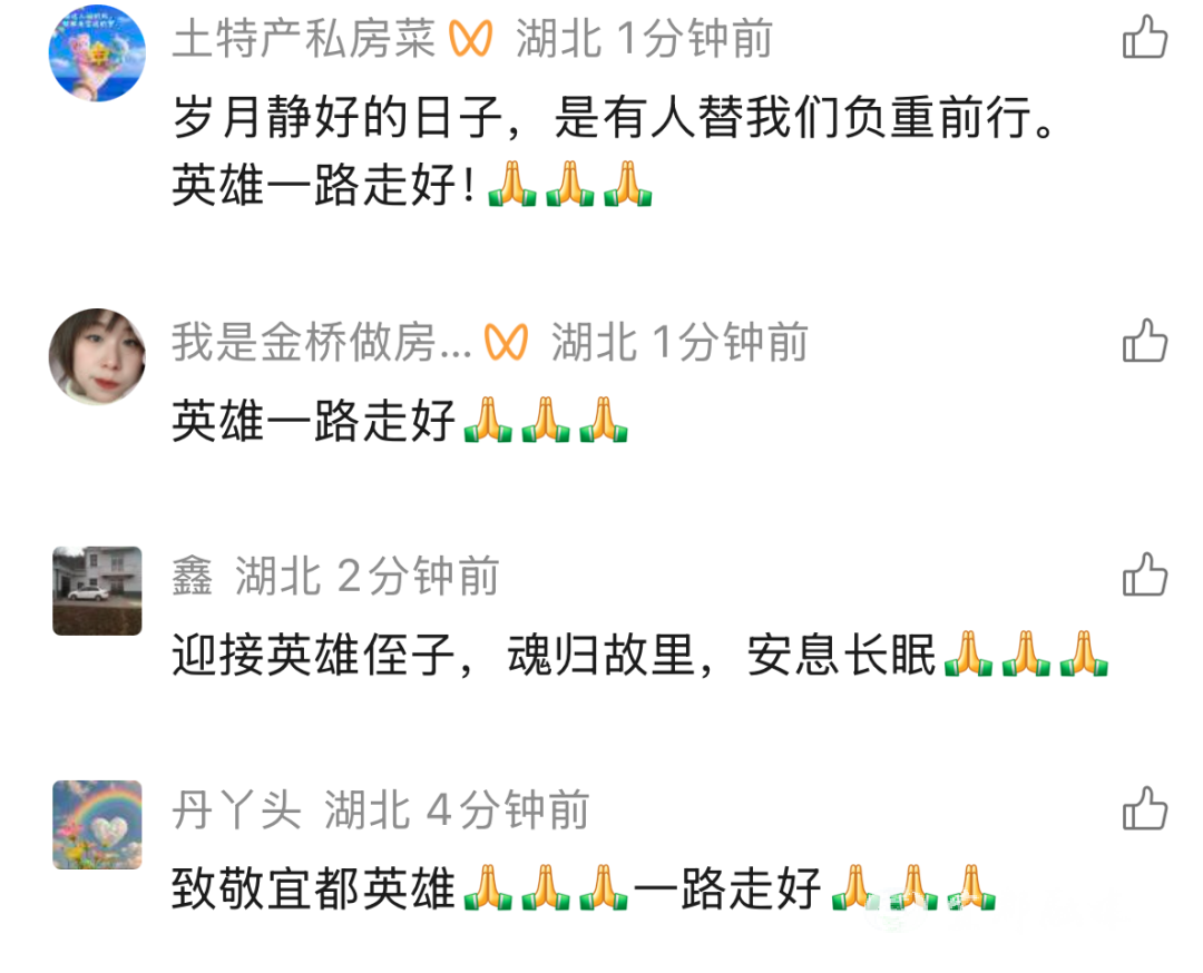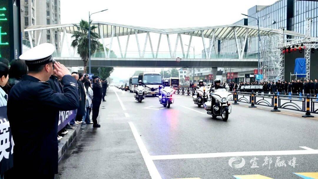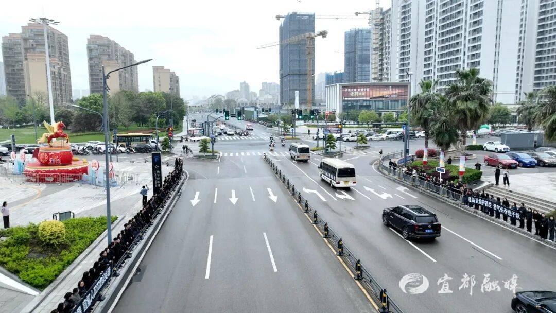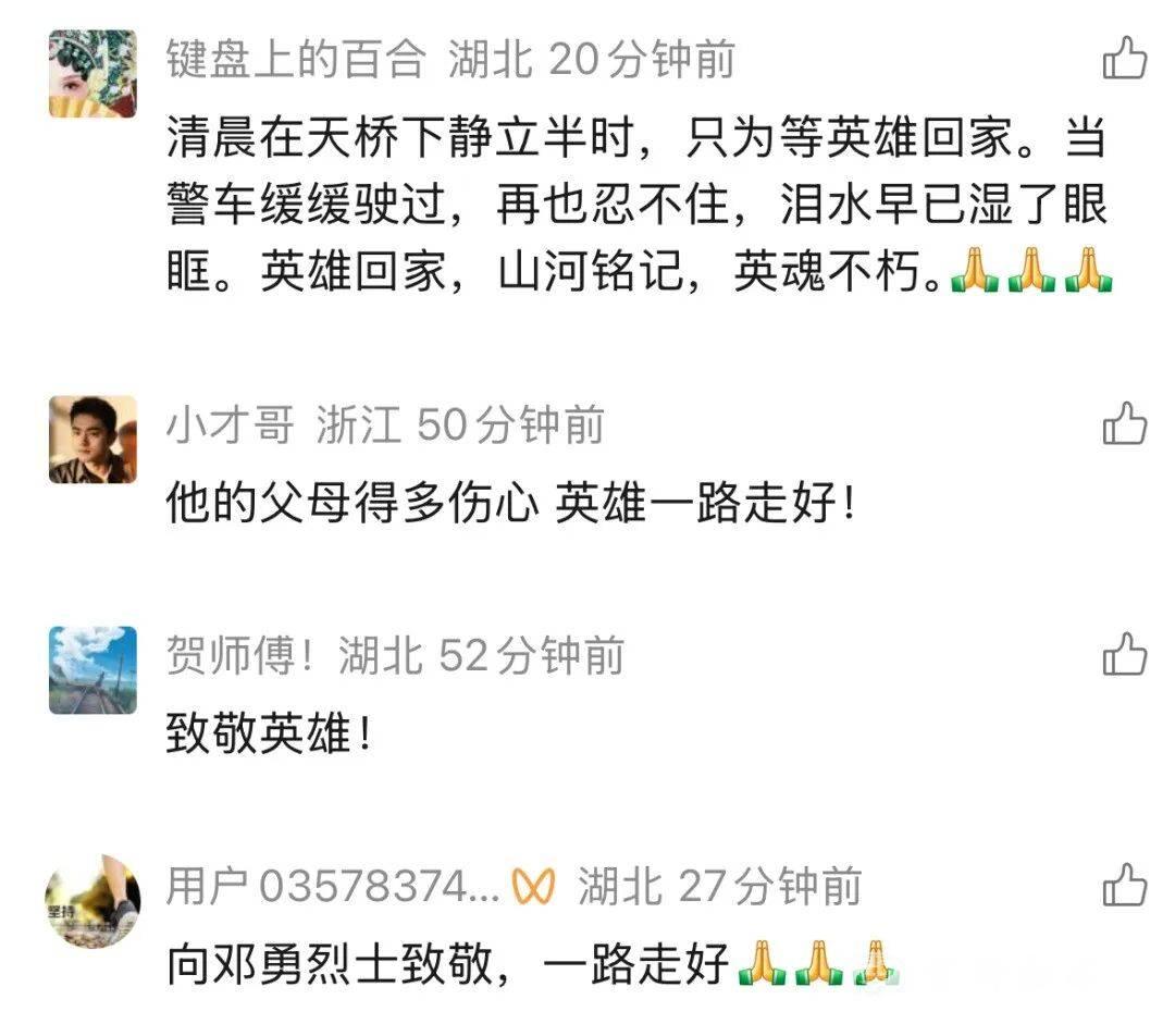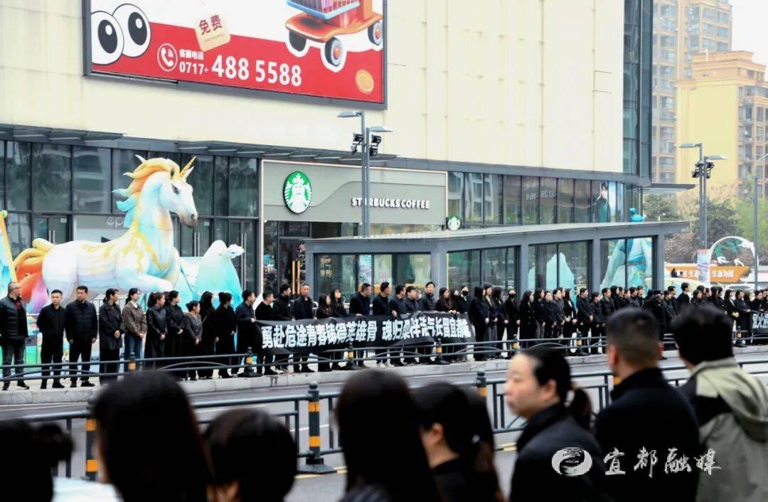 7时20分,承载邓勇烈士骨灰的车辆,从宜都市殡仪馆缓缓启程,驶向宜都市烈士陵园。当灵车驶入万达广场路段时,等候已久的群众纷纷驻足肃立,身着制服的民警整齐列队、脱帽敬礼,形成一条庄重的“送别长廊”,以最质朴真挚的心意,送英雄最后一程。