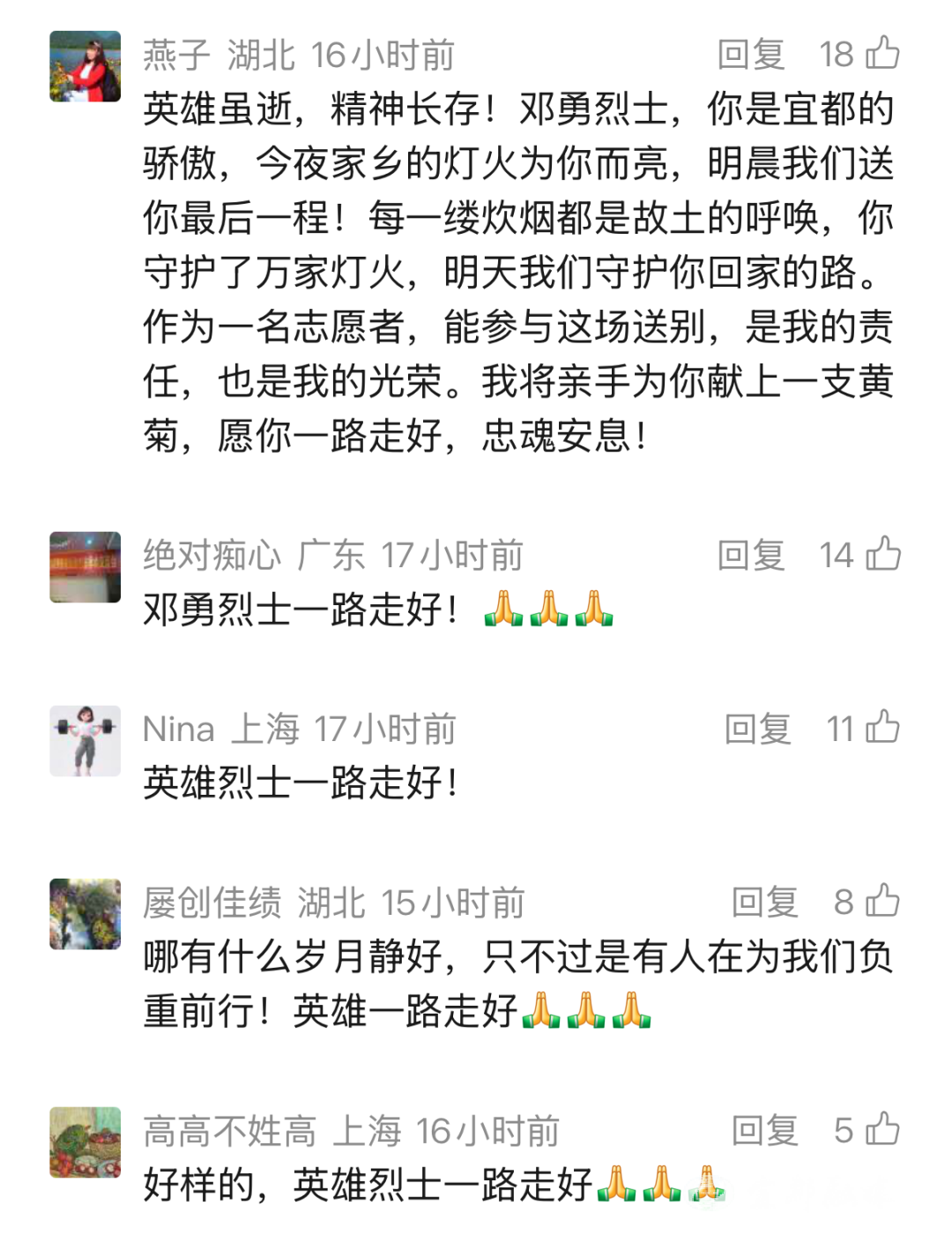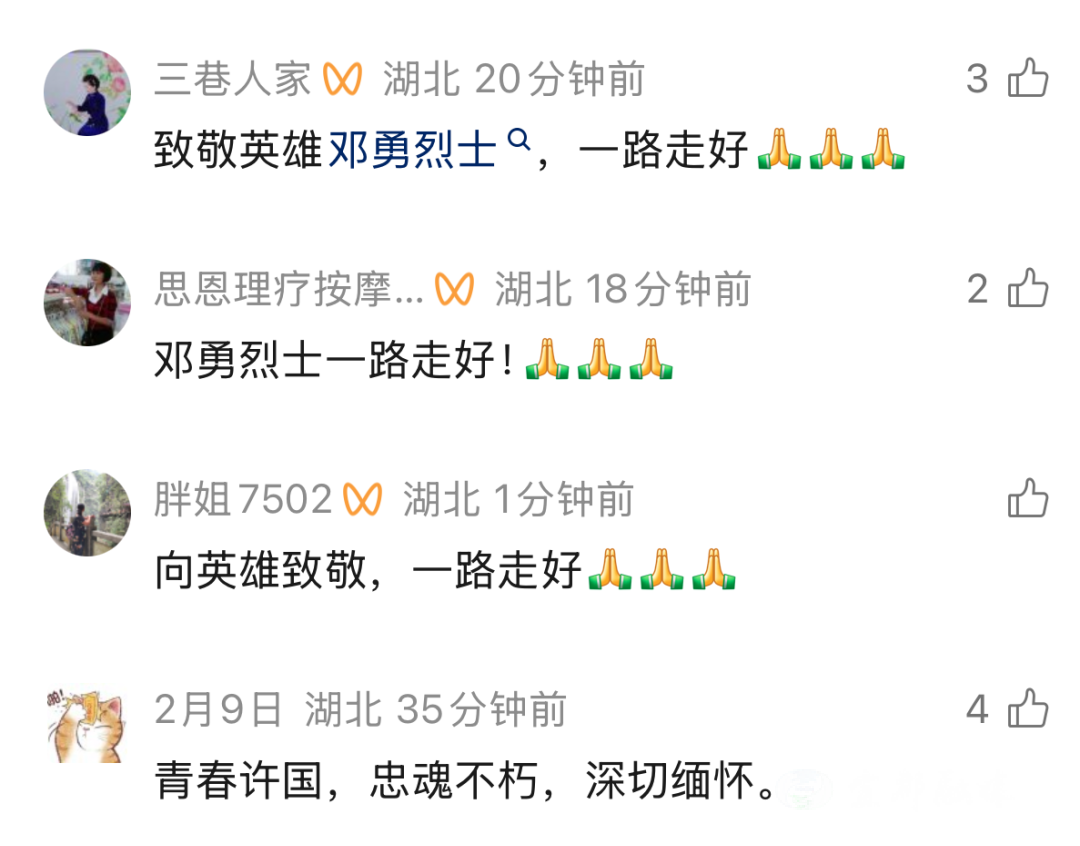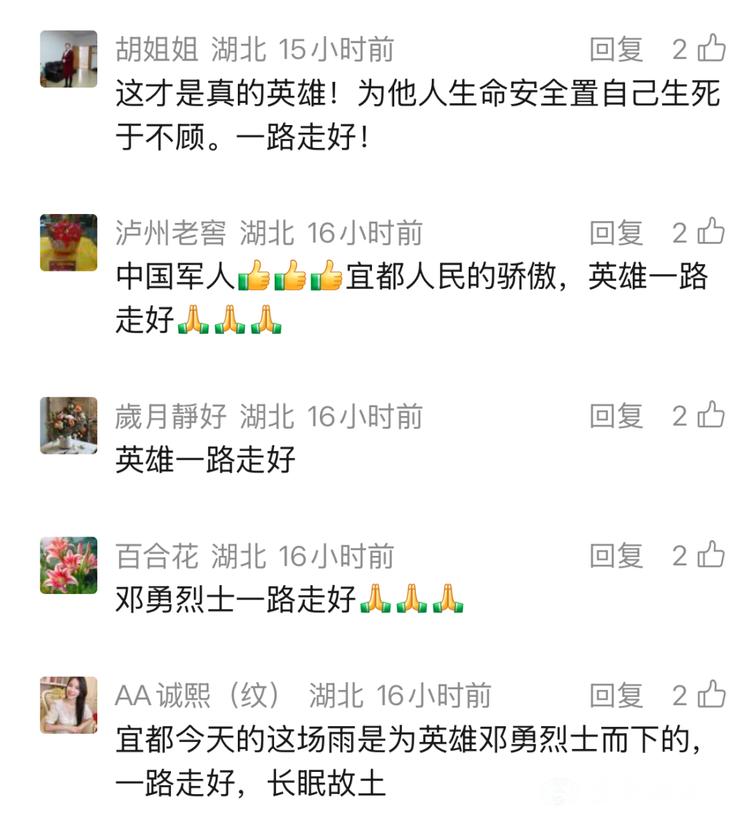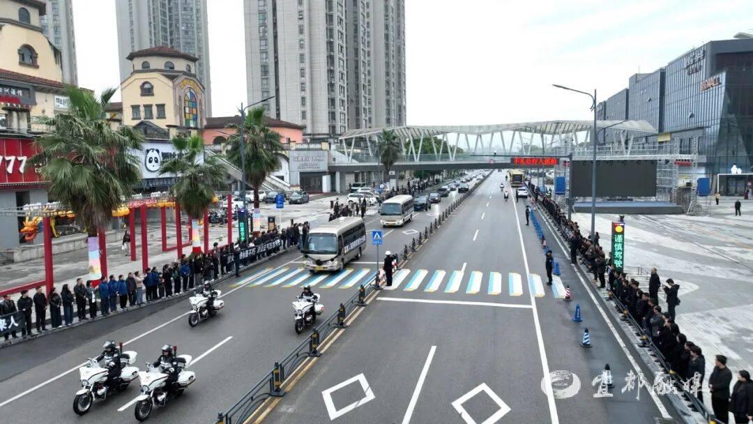 7时20分,承载邓勇烈士骨灰的车辆,从宜都市殡仪馆缓缓启程,驶向宜都市烈士陵园。当灵车驶入万达广场路段时,等候已久的群众纷纷驻足肃立,身着制服的民警整齐列队、脱帽敬礼,形成一条庄重的“送别长廊”,以最质朴真挚的心意,送英雄最后一程。