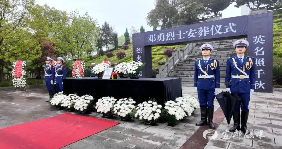 在送别队伍的肃穆凝望中,载有烈士骨灰的车辆抵达宜都市烈士陵园,上午8时,邓勇烈士安葬仪式正式举行。