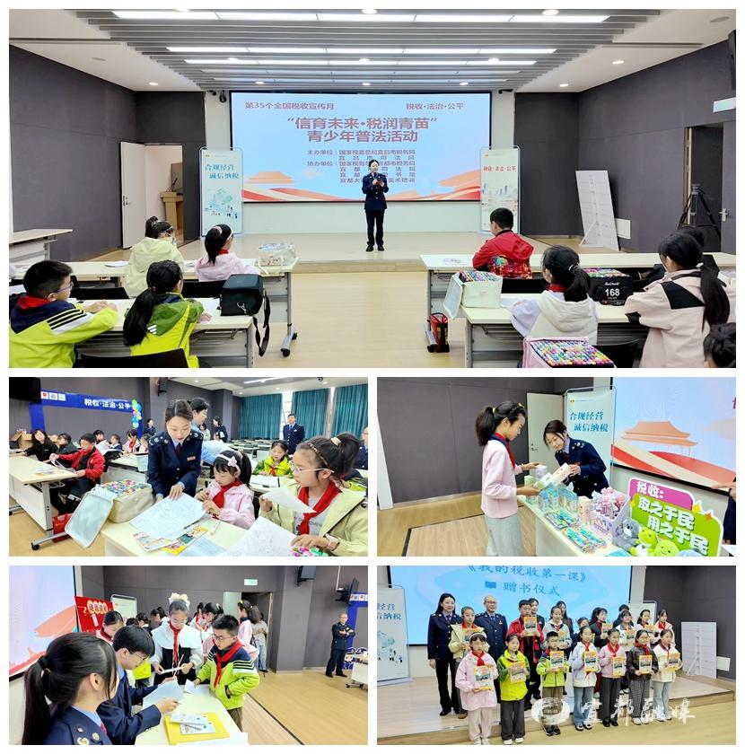 活动现场,主办方为孩子们赠送税收科普书籍。通过税收科普短片、税务青年干部专题课堂讲解税收知识,让青少年了解税收与生活的密切联系。参与“我身边的税收故事”征集。指导孩子们围绕诚信纳税、法治公平等主题开展绘画创作,用五彩画笔描绘心中的税收理念与法治愿景。活动还设置非遗“谜语说税”互动环节,孩子们积极参与猜谜与原创谜语分享,在趣味游戏中巩固税法知识。
