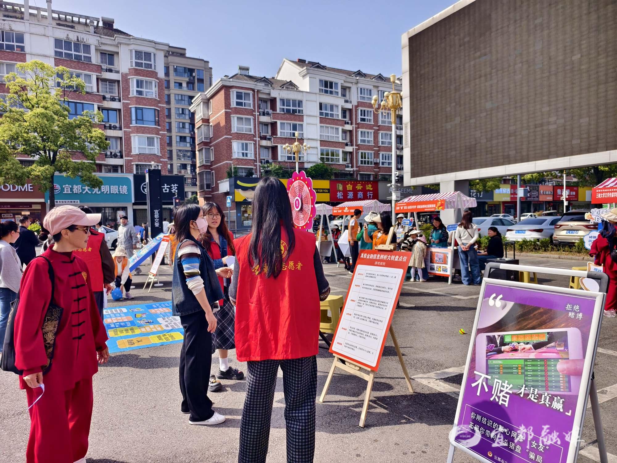 宜都融媒讯(通讯员 鲁晓露)套圈、飞行棋、大转盘……这些看似普通的游戏,如今成了反诈宣传的“新课堂”。4月25日上午,陆城街道名都社区家合润超市门口热闹非凡,一场“反诈草坪公益集市”在此温情启幕。