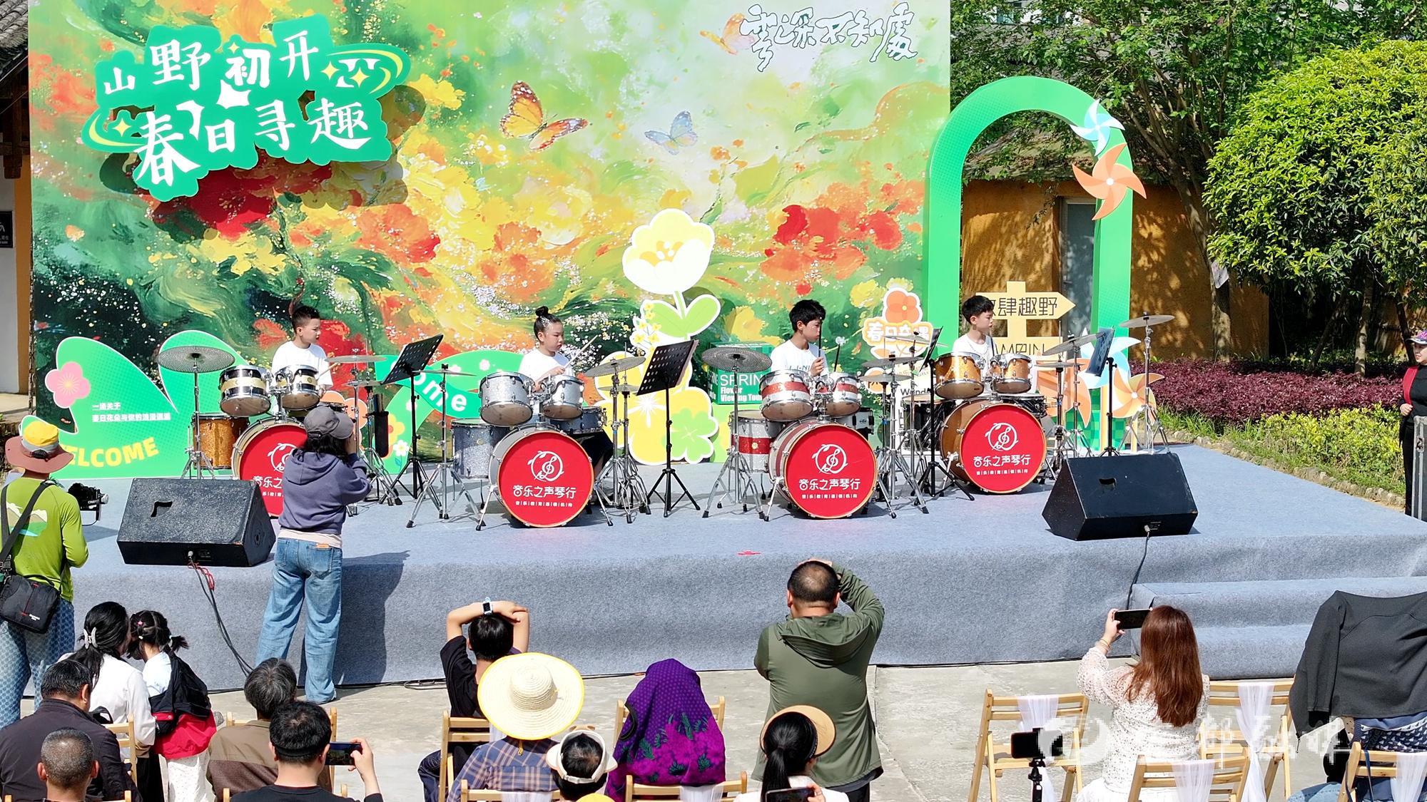 开园仪式上,开场非洲鼓《象王行》气势如虹,古典舞《双面燕洵》水袖轻扬,热闹的文艺表演点燃全场氛围,游客走进“云笺山房”,在竹影环绕的乡村书房里拍照留影。也有人选择在咖啡屋窗边落座,伴着山野风光定格治愈瞬间。在露营地、儿童游乐区,大家在大自然里尽情享受慢时光。