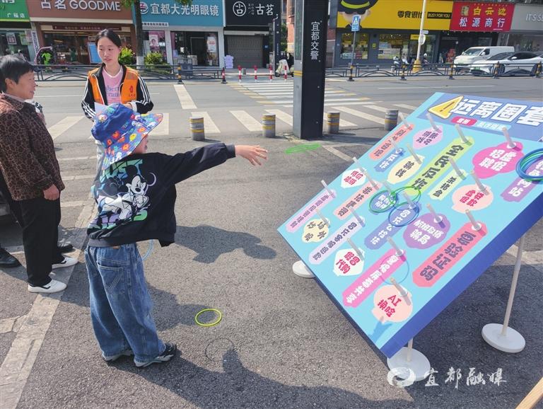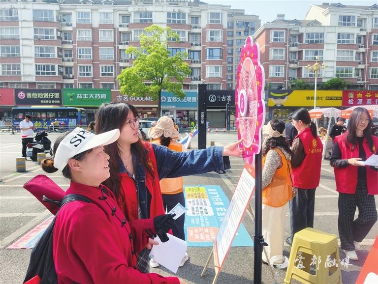 4月25日上午,宜都市陆城街道名都社区家合润超市门口热闹非凡,一场“反诈草坪公益集市”温情启幕(图①、②、③、④)。活动创新采用“专业社工+志愿+物业+高校”多元志愿服务模式,由名都社区依托中国志愿服务基金会“温馨社区计划”专项基金邻里守望支援服务项目,联合三峡大学文传学院、馨园社工团队及辖区名都物业、汉口银行共同举办,吸引数百名居民参与。